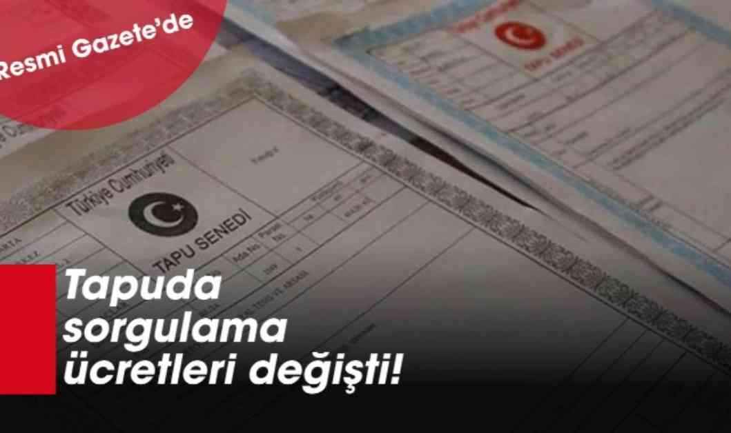 Türkiye genelinde tapu dairelerinde sorgulama yapacaklar dikkat! Sorgulama ücretlerine zam yapıldı. Tapuda uygulanacak yeni tarife cetveli Resmi Gazete’nin 1 Mayıs tarihli sayısında yayınlanarak resmen yürürlüğe girdi.